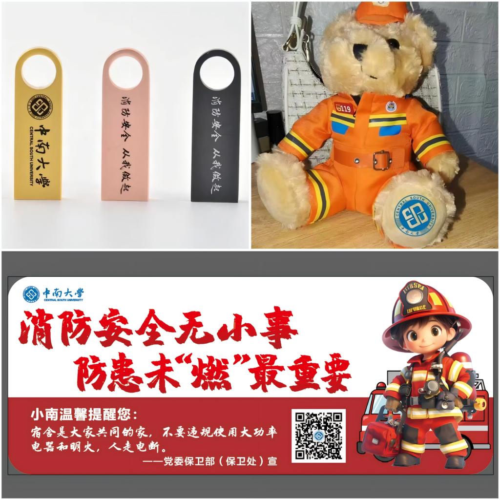 为提升大家的安全学习兴趣和效果,学校保卫部还结合平时在安全管理中的重点难点工作,为新生制作了一些消防知识提示文创产品,如在宿舍入门口设置的温馨提示开关贴、实用轻巧的安全提示语U盘、可爱的消防员玩偶等,希望通过多种多样的模式加强安全宣传效果,使安全意识入脑入心,切实做到预防在前,防范未“燃”。